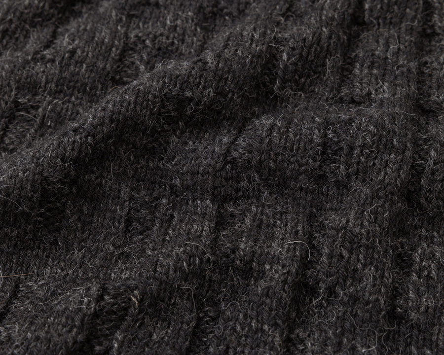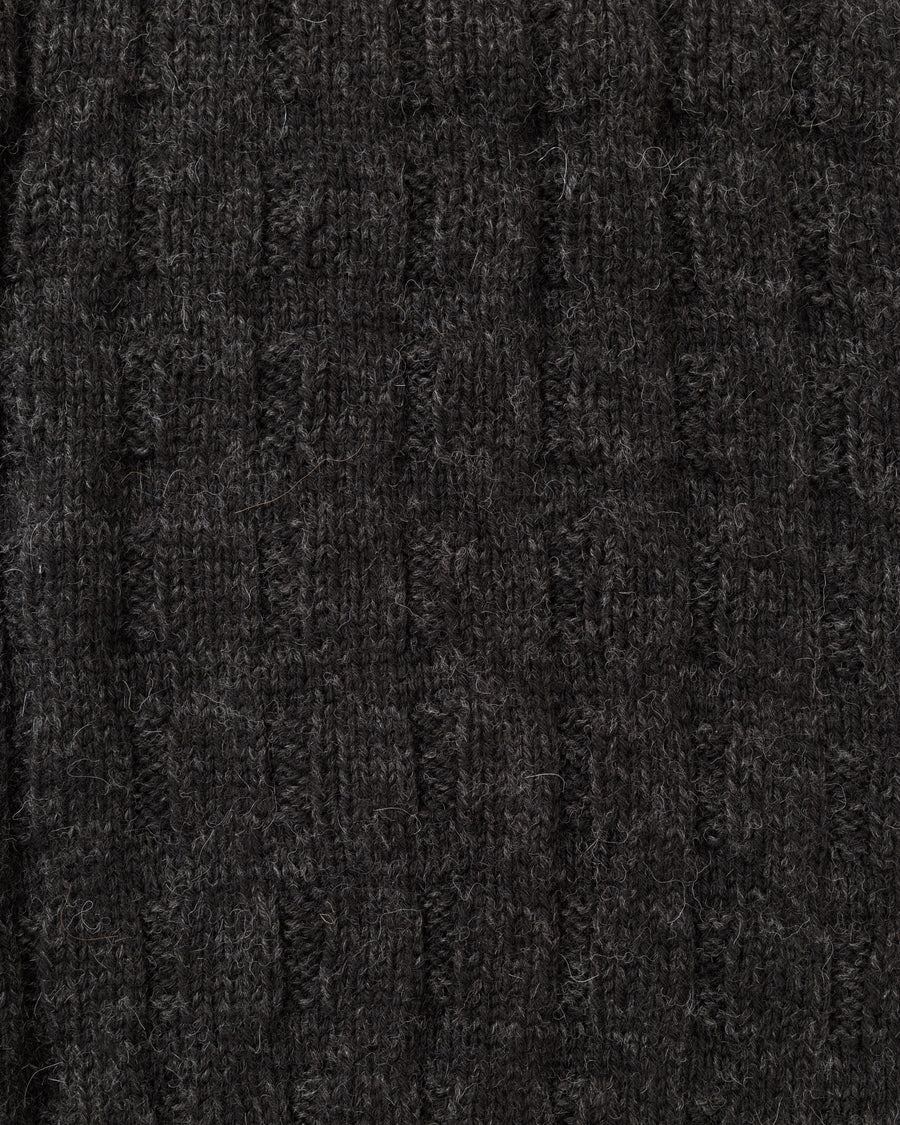 使用している糸は、ペルー産のベビーアルパカです。アルパカの繊維は中央に空洞があるため、より暖かい空気を含み、保温性に優れています。ウールよりもしっとりとした落ち感が特徴です。