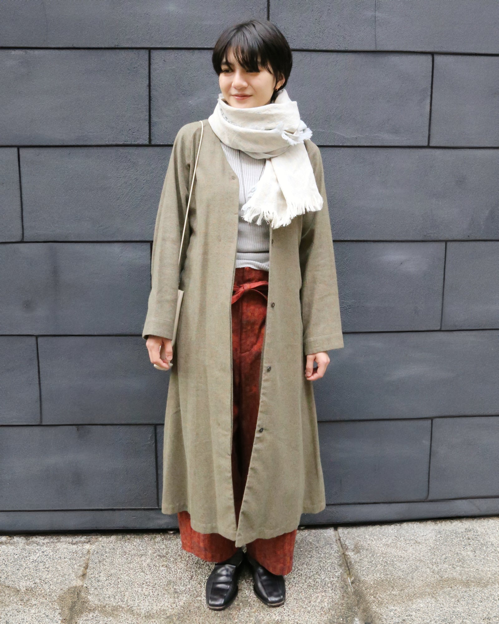 綿麻の経糸に複数の色糸を織り交ぜて仕上げた[grain twill]のライナードレス。