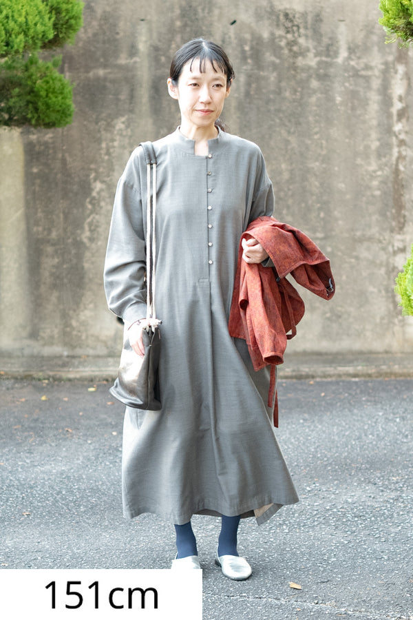 首に沿って立ち上がるリブが、首のラインをすっきりときれいに見せてくれます。程よくゆとりのあるシルエットで、首元のリブが全体のバランスを引き締めるので、リラックスした着心地でも上品な印象に。1枚でスタイリングが決まる、上質なワンピースです。