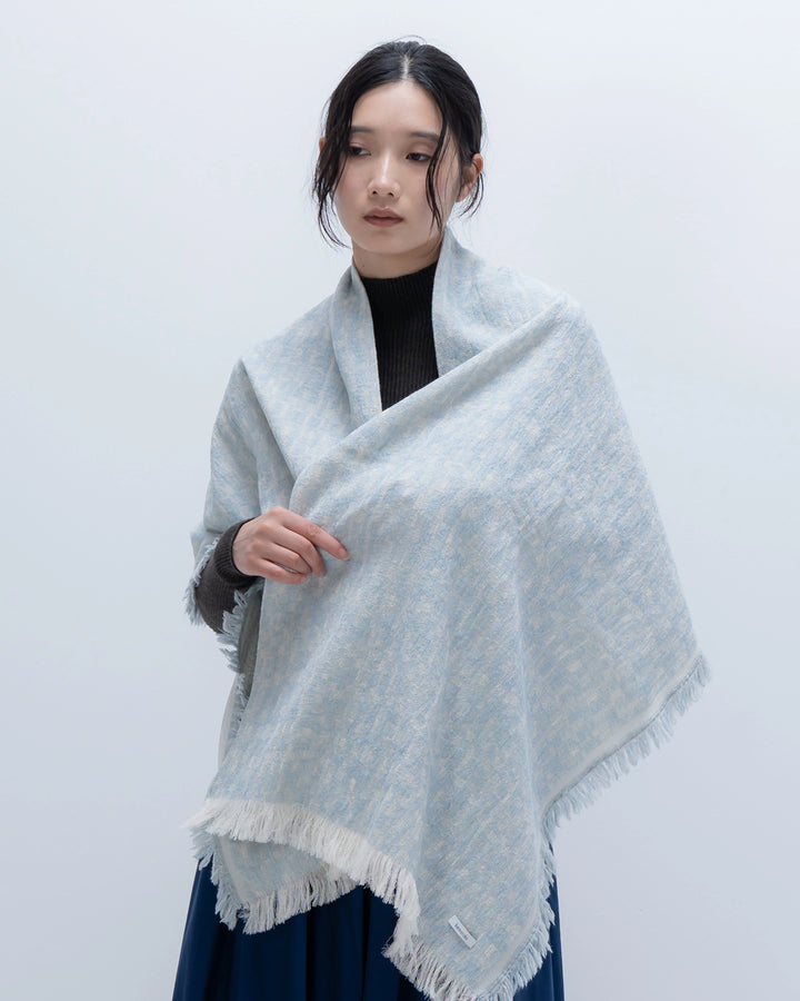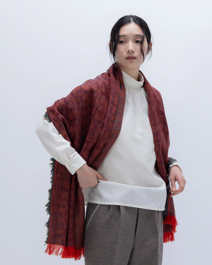 山の木々が色づきはじめる移ろいを、ジャカード織りで表現した [land scape] のウールマフラー。